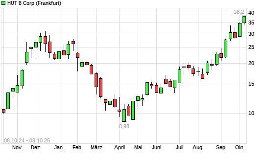 Mit dem Anstieg auf 35,75 EUR hat die Hut 8 Mining-Aktie (ISIN US44812J1043) am 07.10.2025 ein neues 3-Jahres-Hoch erreicht und damit den Kurs vom 06.10.2025 eingestellt.Die Hut 8 Mining-Aktie ...weiterlesen