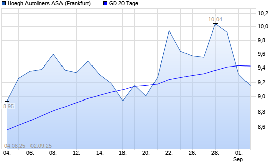 Mit dem Rücksetzer auf 9,31 EUR hat die Hoeegh Autoliners-Aktie am 01.09.2025 die 20-Tage-Linie nach unten gekreuzt.Die Hoeegh Autoliners-Aktie befindet sich seit dem 23.07.2025 im langfristigen ...weiterlesen
