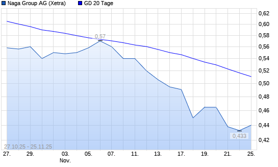 Mit dem Anstieg auf 0,52 EUR hat die Naga Group-Aktie am 24.11.2025 die 20-Tage-Linie nach oben gekreuzt.Die Naga Group-Aktie befindet sich seit dem 14.10.2025 im langfristigen Abwärtstrend ...weiterlesen