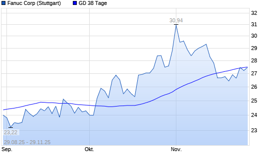 Mit dem Anstieg auf 27,38 EUR hat die Fanuc-Aktie am 28.11.2025 die 38-Tage-Linie nach oben gekreuzt.Die Fanuc-Aktie befindet sich seit dem 03.10.2025 im langfristigen Aufwärtstrend und hat ...weiterlesen