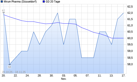 Mit dem Anstieg auf 59,00 EUR hat die Mirum Pharmaceuticals-Aktie am 17.11.2025 die 20-Tage-Linie nach oben gekreuzt.Die Mirum Pharmaceuticals-Aktie befindet sich seit dem 03.07.2025 im langfristigen ...weiterlesen