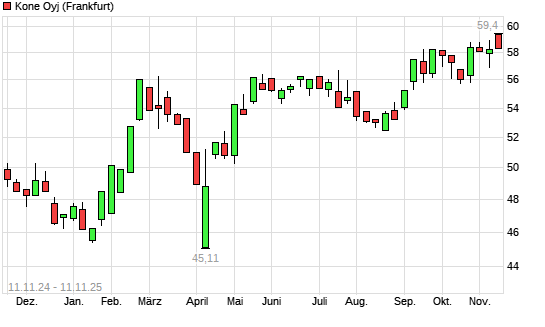 Mit dem Anstieg auf 59,40 EUR hat die Kone-Aktie (ISIN FI0009013403) am 10.11.2025 ein neues 3-Jahres-Hoch erreicht und damit den Kurs vom 28.10.2025 eingestellt.Die Kone-Aktie befindet sich ...weiterlesen