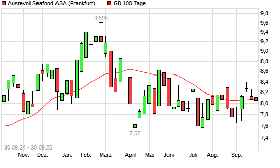 Mit dem Anstieg auf 8,17 EUR hat die Austevoll Seafood-Aktie am 29.09.2025 die 100-Tage-Linie nach oben gekreuzt.Die Austevoll Seafood-Aktie befindet sich seit dem 16.09.2025 im langfristigen ...weiterlesen