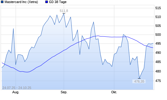 Mit dem Anstieg auf 495,45 EUR hat die Mastercard-Aktie am 23.10.2025 die 38-Tage-Linie nach oben gekreuzt.Die Mastercard-Aktie befindet sich seit dem 10.10.2025 im langfristigen Abwärtstrend ...weiterlesen