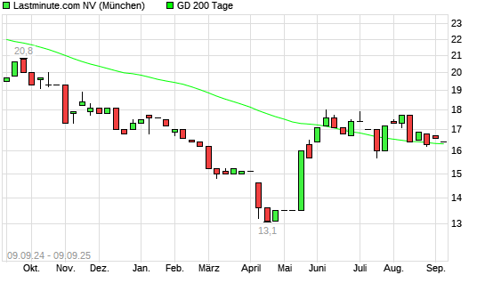 Mit dem Rücksetzer auf 16,00 EUR hat die Lastminute.com-Aktie am 08.09.2025 die 200-Tage-Linie nach unten gekreuzt.Die Lastminute.com-Aktie befand sich seit dem 01.09.2025 im langfristigen ...weiterlesen