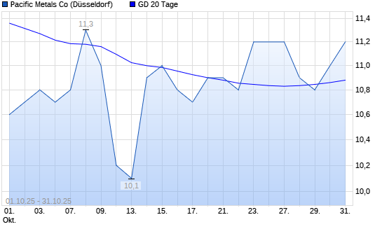 Mit dem Anstieg auf 11,10 EUR hat die Pacific Metals Co-Aktie am 30.10.2025 die 20-Tage-Linie nach oben gekreuzt.Die Pacific Metals Co-Aktie befindet sich seit dem 14.10.2025 im langfristigen ...weiterlesen
