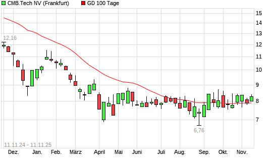 Mit dem Anstieg auf 8,19 EUR hat die Euronav-Aktie am 10.11.2025 die 100-Tage-Linie nach oben gekreuzt.Die Euronav-Aktie befindet sich seit dem 03.11.2025 im langfristigen Abwärtstrend und hat ...weiterlesen
