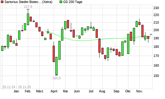 Mit dem Anstieg auf 190,60 EUR hat die Sartorius Stedim Biotech-Aktie am 24.11.2025 die 200-Tage-Linie nach oben gekreuzt.Die Sartorius Stedim Biotech-Aktie befand sich seit dem 18.11.2025 im ...weiterlesen