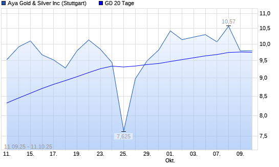 Mit dem Rücksetzer auf 9,48 EUR hat die Aya Gold & Silver-Aktie am 10.10.2025 die 20-Tage-Linie nach unten gekreuzt.Die Aya Gold & Silver-Aktie befindet sich seit dem 26.09.2025 im ...weiterlesen
