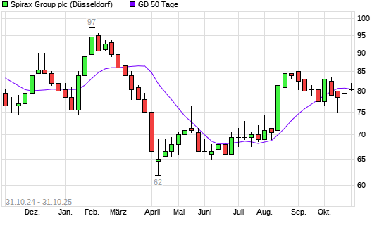 Mit dem Anstieg auf 80,00 EUR hat die Spirax-Sarco-Aktie am 30.10.2025 die 50-Tage-Linie nach oben gekreuzt.Die Spirax-Sarco-Aktie befindet sich seit dem 17.10.2025 im langfristigen Aufwärtstrend ...weiterlesen