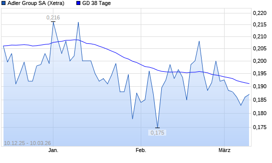 Mit dem Anstieg auf 0,19 EUR hat die Adler-Aktie am 09.03.2026 die 38-Tage-Linie nach oben gekreuzt.Die Adler-Aktie befindet sich seit dem 27.11.2025 im langfristigen Abwärtstrend und ...weiterlesen