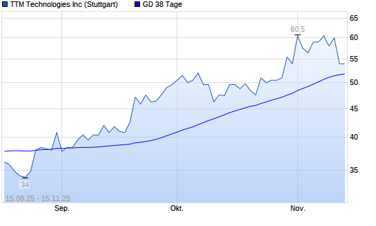 Mit dem Rücksetzer auf 49,80 EUR hat die TTM Technologies-Aktie am 14.11.2025 die 38-Tage-Linie nach unten gekreuzt.Die TTM Technologies-Aktie befindet sich seit dem 02.05.2025 im langfristigen ...weiterlesen
