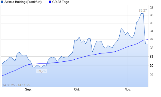 Mit dem Rücksetzer auf 32,46 EUR hat die Azimut Holding-Aktie am 13.11.2025 die 38-Tage-Linie nach unten gekreuzt.Die Azimut Holding-Aktie befindet sich seit dem 28.04.2025 im langfristigen ...weiterlesen