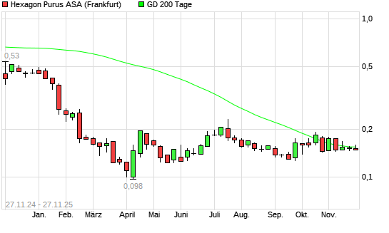Mit dem Rücksetzer auf 0,15 EUR hat die Hexagon Purus-Aktie am 26.11.2025 die 200-Tage-Linie nach unten gekreuzt.Die Hexagon Purus-Aktie befand sich seit dem 24.11.2025 im langfristigen ...weiterlesen