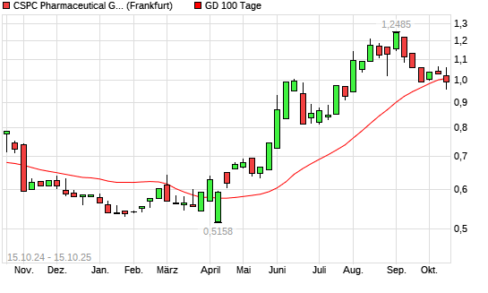 Mit dem Rücksetzer auf 0,96 EUR hat die CSPC Pharmaceutical Group-Aktie am 14.10.2025 die 100-Tage-Linie nach unten gekreuzt.Die CSPC Pharmaceutical Group-Aktie befindet sich seit dem 17.04.2025 ...weiterlesen