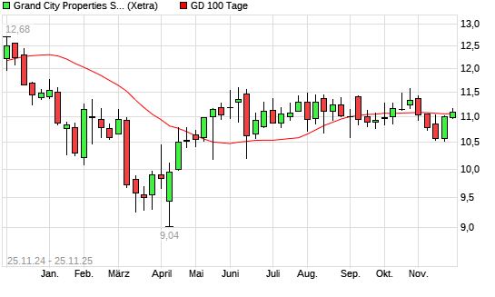 Mit dem Anstieg auf 11,06 EUR hat die Grand City Properties-Aktie am 24.11.2025 die 100-Tage-Linie nach oben gekreuzt.Die Grand City Properties-Aktie befindet sich seit dem 20.11.2025 im langfristigen ...weiterlesen