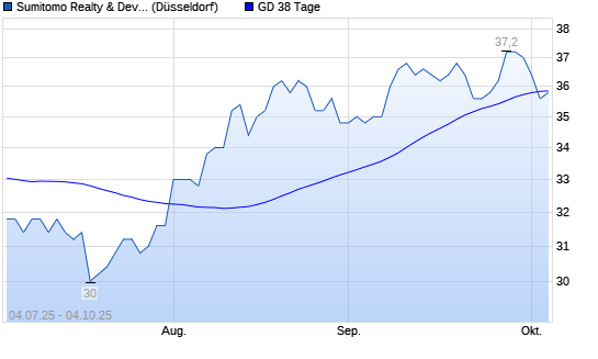 Mit dem Anstieg auf 36,20 EUR hat die Sumitomo Realty & Development-Aktie am 03.10.2025 die 38-Tage-Linie nach oben gekreuzt.Die Sumitomo Realty & Development-Aktie befindet sich seit dem ...weiterlesen