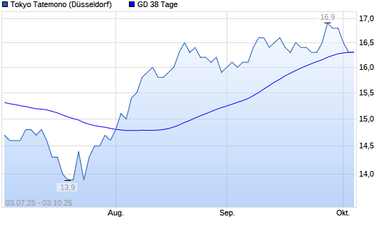 Mit dem Rücksetzer auf 16,30 EUR hat die Tokyo Tatemono-Aktie am 02.10.2025 die 38-Tage-Linie nach unten gekreuzt.Die Tokyo Tatemono-Aktie befindet sich seit dem 04.08.2025 im langfristigen ...weiterlesen