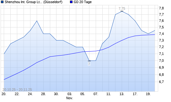 Mit dem Rücksetzer auf 7,45 EUR hat die Shenzhou International Group-Aktie am 19.11.2025 die 20-Tage-Linie nach unten gekreuzt.Die Shenzhou International Group-Aktie befindet sich seit ...weiterlesen