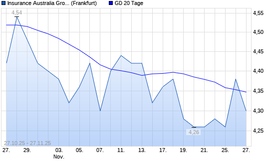 Mit dem Anstieg auf 4,38 EUR hat die Insurance Australia Group-Aktie am 26.11.2025 die 20-Tage-Linie nach oben gekreuzt.Die Insurance Australia Group-Aktie befindet sich seit dem 10.10.2025 ...weiterlesen