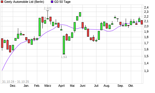Mit dem Rücksetzer auf 2,07 EUR hat die Geely Automobile-Aktie am 30.10.2025 die 50-Tage-Linie nach unten gekreuzt.Die Geely Automobile-Aktie befindet sich seit dem 10.07.2025 im langfristigen ...weiterlesen