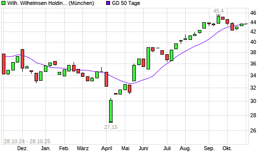 Mit dem Rücksetzer auf 43,35 EUR hat die Wilh. Wilhelmsen Holding ASA-Aktie am 27.10.2025 die 50-Tage-Linie nach unten gekreuzt.Die Wilh. Wilhelmsen Holding ASA-Aktie befindet sich seit ...weiterlesen