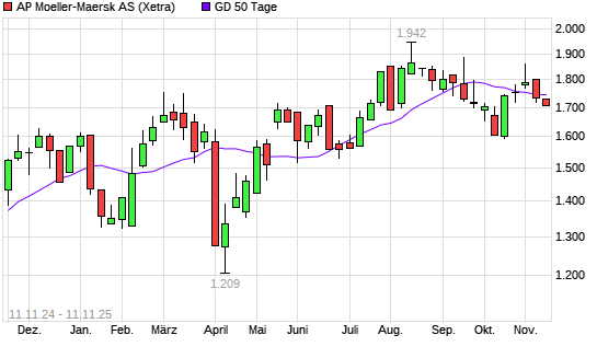 Mit dem Anstieg auf 1.750,00 EUR hat die AP Moeller-Maersk A-Aktie am 10.11.2025 die 50-Tage-Linie nach oben gekreuzt.Die AP Moeller-Maersk A-Aktie befindet sich seit dem 30.04.2025 im langfristigen ...weiterlesen