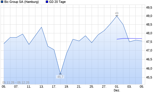 Mit dem Anstieg auf 48,05 EUR hat die Bic-Aktie am 04.12.2025 die 20-Tage-Linie nach oben gekreuzt.Die Bic-Aktie befindet sich seit dem 03.04.2025 im langfristigen Abwärtstrend und hat in diesem ...weiterlesen