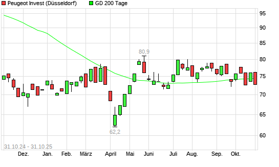 Mit dem Rücksetzer auf 72,60 EUR hat die Peugeot Invest-Aktie am 30.10.2025 die 200-Tage-Linie nach unten gekreuzt.Die Peugeot Invest-Aktie befand sich seit dem 20.10.2025 im langfristigen ...weiterlesen