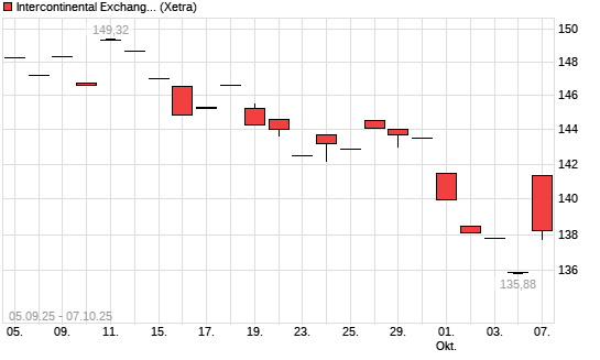Mit dem Rücksetzer auf 135,28 EUR hat die IntercontinentalExchange Group-Aktie (ISIN US45866F1049) am 06.10.2025 ein neues 12-Monats-Tief erreicht und damit den Kurs vom 08.04.2025 eingestellt.Die ...weiterlesen