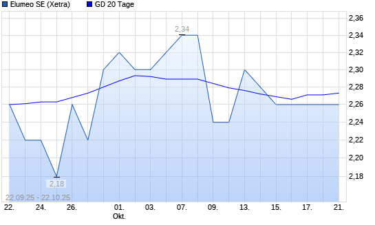 Mit dem Anstieg auf 2,24 EUR hat die elumeo SE-Aktie am 21.10.2025 die 20-Tage-Linie nach oben gekreuzt.Die elumeo SE-Aktie befindet sich seit dem 25.09.2025 im langfristigen Aufwärtstrend und ...weiterlesen
