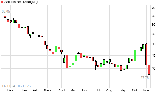 Mit dem Rücksetzer auf 37,82 EUR hat die Arcadis-Aktie (ISIN NL0006237562) am 05.11.2025 ein neues 12-Monats-Tief erreicht und damit den Kurs vom 04.11.2025 eingestellt.Die Arcadis-Aktie ...weiterlesen