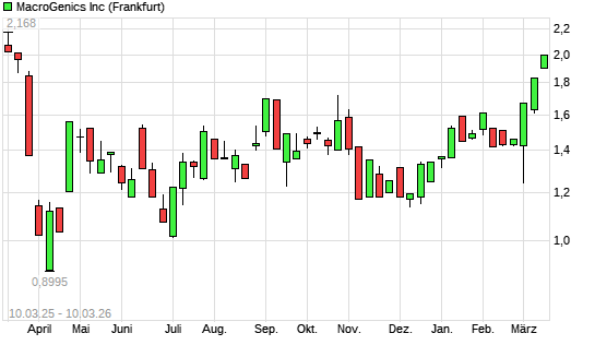 Mit dem Anstieg auf 1,99 EUR hat die MacroGenics-Aktie (ISIN US5560991094) am 09.03.2026 ein neues 6-Monats-Hoch erreicht und damit den Kurs vom 06.03.2026 ...weiterlesen