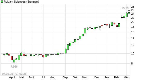Mit dem Anstieg auf 25,22 EUR hat die Roivant Sciences-Aktie (ISIN BMG762791017) am 06.03.2026 ein neues All-Time-High erreicht und damit den Kurs vom 05.03.2026 eingestellt.Die ...weiterlesen