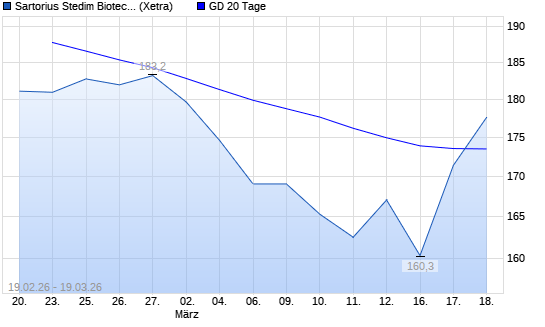 Mit dem Anstieg auf 176,55 EUR hat die Sartorius Stedim Biotech-Aktie am 18.03.2026 die 20-Tage-Linie nach oben gekreuzt.Die Sartorius Stedim Biotech-Aktie befindet sich seit ...weiterlesen