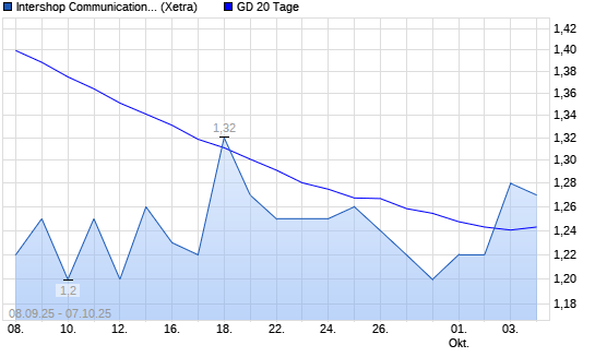Mit dem Anstieg auf 1,26 EUR hat die Intershop-Aktie am 06.10.2025 die 20-Tage-Linie nach oben gekreuzt.Die Intershop-Aktie befindet sich seit dem 28.04.2025 im langfristigen Abwärtstrend und ...weiterlesen