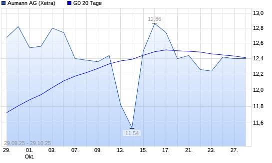 Mit dem Rücksetzer auf 12,16 EUR hat die Aumann-Aktie am 28.10.2025 die 20-Tage-Linie nach unten gekreuzt.Die Aumann-Aktie befindet sich seit dem 16.10.2025 im langfristigen Aufwärtstrend ...weiterlesen