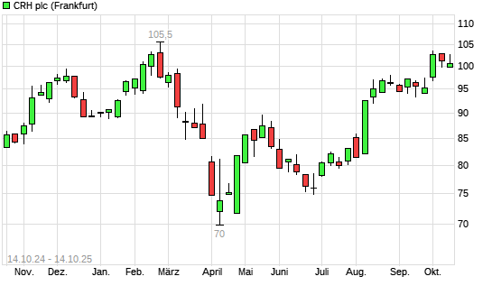 Mit dem Anstieg auf 102,75 EUR hat die CRH-Aktie (ISIN IE0001827041) am 13.10.2025 ein neues 6-Monats-Hoch erreicht und damit den Kurs vom 06.10.2025 eingestellt.Die CRH-Aktie befindet sich ...weiterlesen