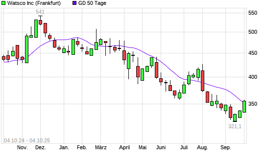 Mit dem Anstieg auf 354,70 EUR hat die Watsco A-Aktie am 03.10.2025 die 50-Tage-Linie nach oben gekreuzt.Die Watsco A-Aktie befindet sich seit dem 03.04.2025 im langfristigen Abwärtstrend und ...weiterlesen