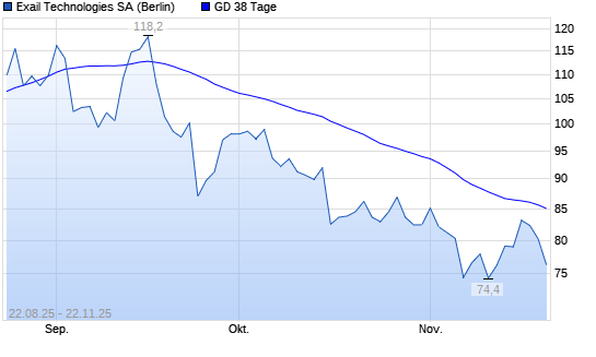 Mit dem Rücksetzer auf 77,50 EUR hat die Exail Technologies-Aktie am 21.11.2025 die 38-Tage-Linie nach unten gekreuzt.Die Exail Technologies-Aktie befindet sich seit dem 21.01.2025 im langfristigen ...weiterlesen