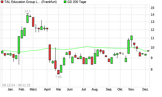 Mit dem Anstieg auf 9,70 EUR hat die TAL Education-Aktie am 08.12.2025 die 200-Tage-Linie nach oben gekreuzt.Die TAL Education-Aktie befand sich seit dem 14.11.2025 im ...weiterlesen