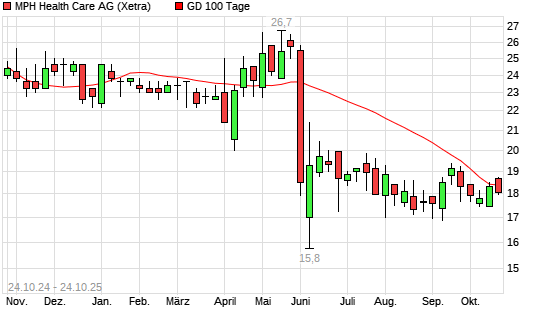 Mit dem Anstieg auf 18,20 EUR hat die MPH Health Care-Aktie am 23.10.2025 die 100-Tage-Linie nach oben gekreuzt.Die MPH Health Care-Aktie befindet sich seit dem 30.05.2025 im langfristigen Abwärtstrend ...weiterlesen