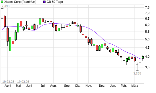 Mit dem Rücksetzer auf 3,85 EUR hat die Xiaomi-Aktie am 18.03.2026 die 50-Tage-Linie nach unten gekreuzt.Die Xiaomi-Aktie befindet sich seit dem 10.10.2025 im ...weiterlesen