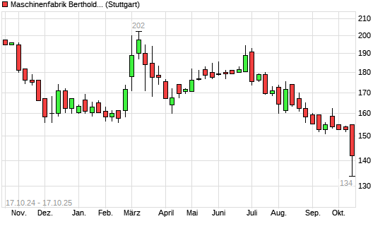 Mit dem Rücksetzer auf 143,50 EUR hat die Maschinenfabrik Berthold Hermle Vz-Aktie (ISIN DE0006052830) am 16.10.2025 ein neues 10-Jahres-Tief erreicht und damit den Kurs vom 14.10.2025 eingestellt.Die ...weiterlesen