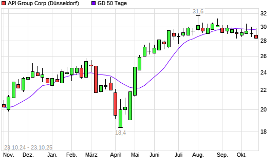 Mit dem Anstieg auf 29,80 EUR hat die API Group-Aktie am 22.10.2025 die 50-Tage-Linie nach oben gekreuzt.Die API Group-Aktie befindet sich seit dem 02.05.2025 im langfristigen Aufwärtstrend ...weiterlesen