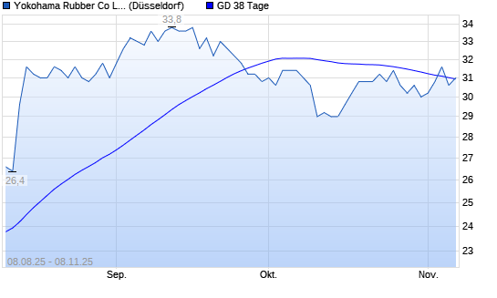 Mit dem Anstieg auf 31,40 EUR hat die Yokohama Rubber-Aktie am 07.11.2025 die 38-Tage-Linie nach oben gekreuzt.Die Yokohama Rubber-Aktie befindet sich seit dem 24.06.2025 im langfristigen Aufwärtstrend ...weiterlesen