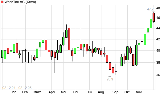 Mit dem Anstieg auf 46,30 EUR hat die WashTec-Aktie (ISIN DE0007507501) am 01.12.2025 ein neues 3-Jahres-Hoch erreicht und damit den Kurs vom 28.11.2025 eingestellt.Die WashTec-Aktie befindet ...weiterlesen