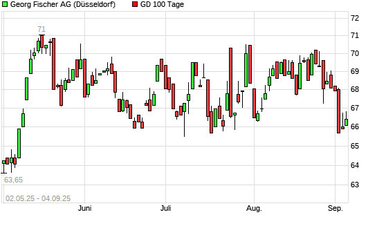 Mit dem Rücksetzer auf 66,15 EUR hat die Georg Fischer-Aktie am 03.09.2025 die 100-Tage-Linie nach unten gekreuzt.Die Georg Fischer-Aktie befindet sich seit dem 01.08.2025 im langfristigen ...weiterlesen
