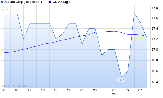 Mit dem Anstieg auf 17,50 EUR hat die Subaru-Aktie am 07.10.2025 die 20-Tage-Linie nach oben gekreuzt.Die Subaru-Aktie befindet sich seit dem 05.08.2025 im langfristigen Aufwärtstrend und hat ...weiterlesen