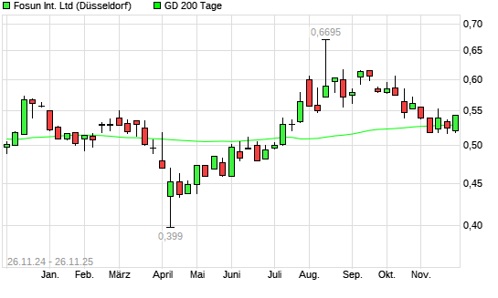 Mit dem Anstieg auf 0,53 EUR hat die FOSUN International-Aktie am 25.11.2025 die 200-Tage-Linie nach oben gekreuzt.Die FOSUN International-Aktie befand sich seit dem 21.11.2025 im langfristigen ...weiterlesen
